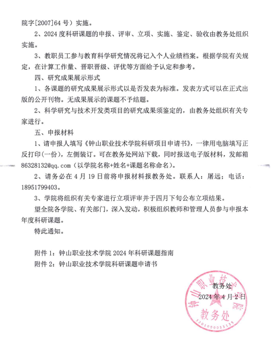 关于公布《2024年度钟山职业技术学院科研课题指南》的通知