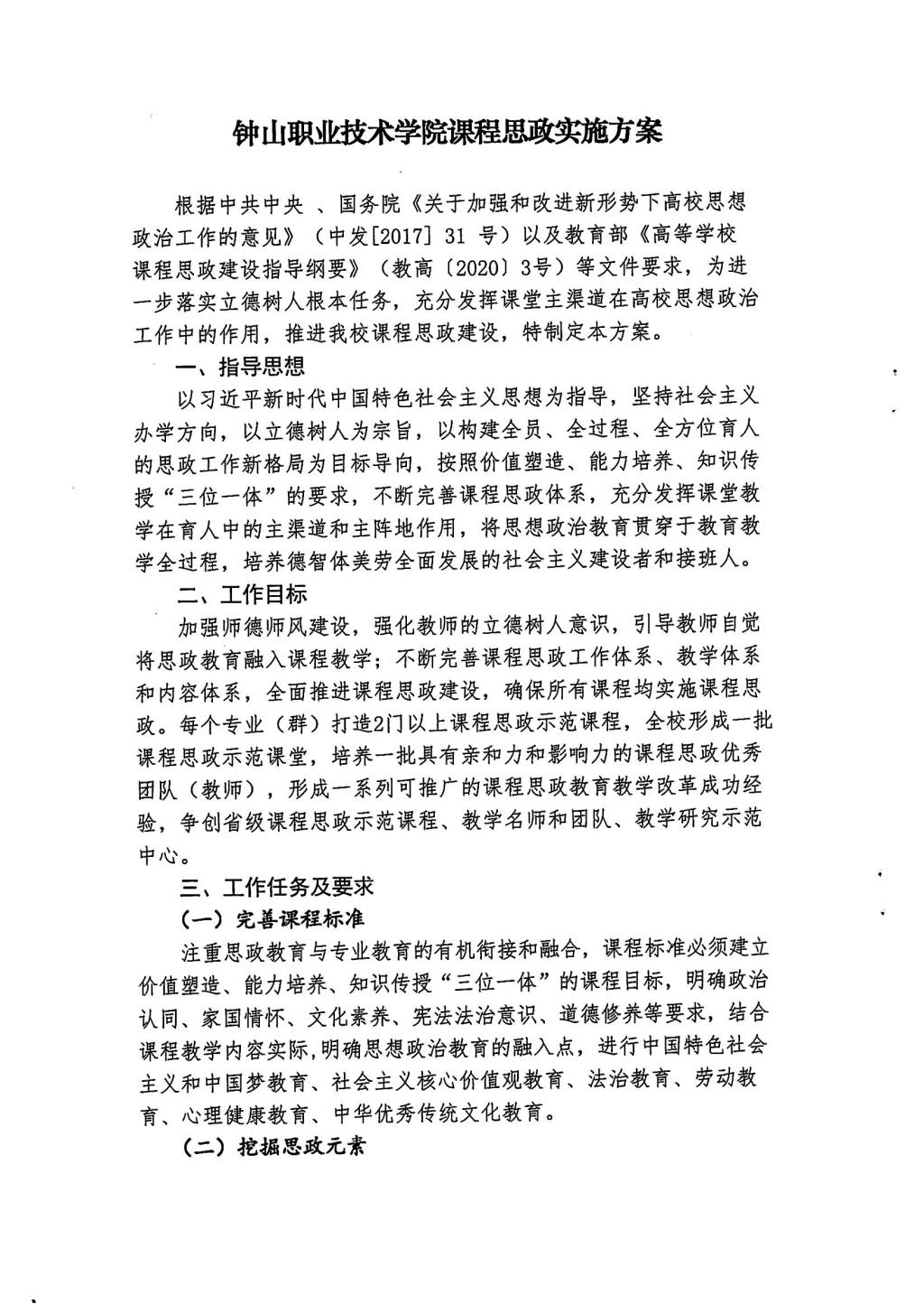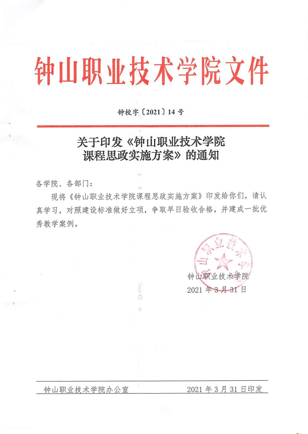 关于印发《钟山职业技术学院课程思政实施方案》的通知