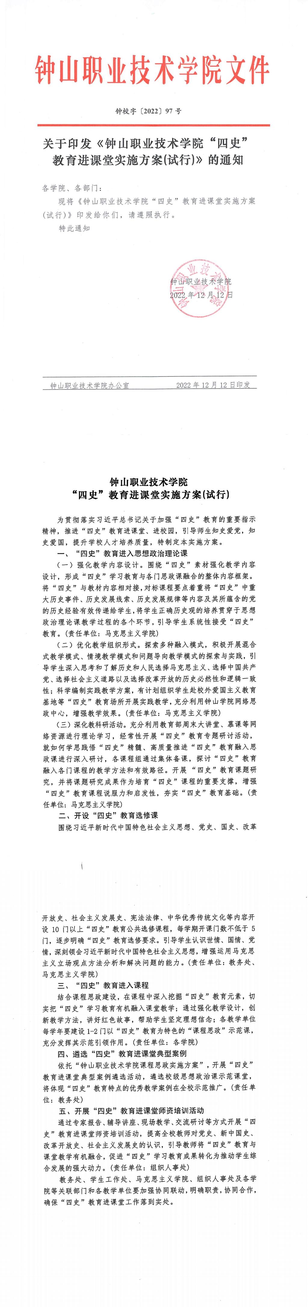 关于印发《钟山职业技术学院》“四史”教育进课堂实施方案(试行)》的通知