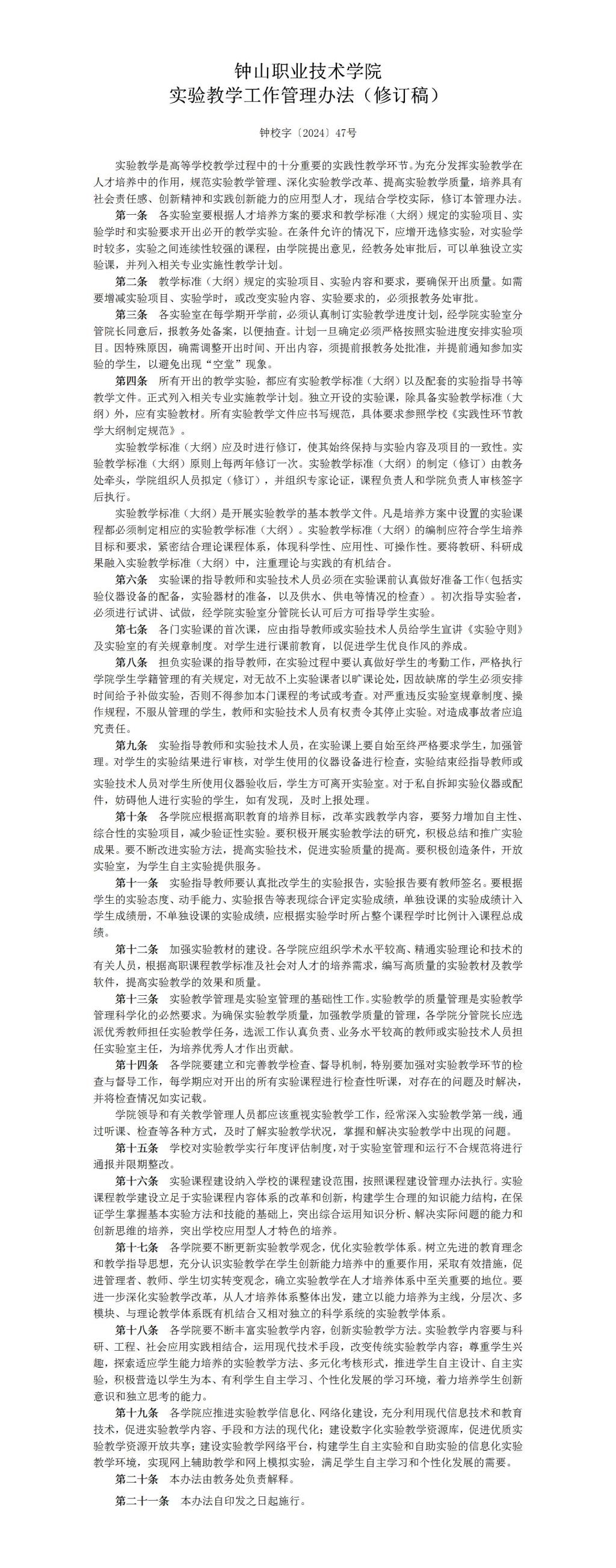 钟山职业技术学院实验教学工作管理办法(修订稿)